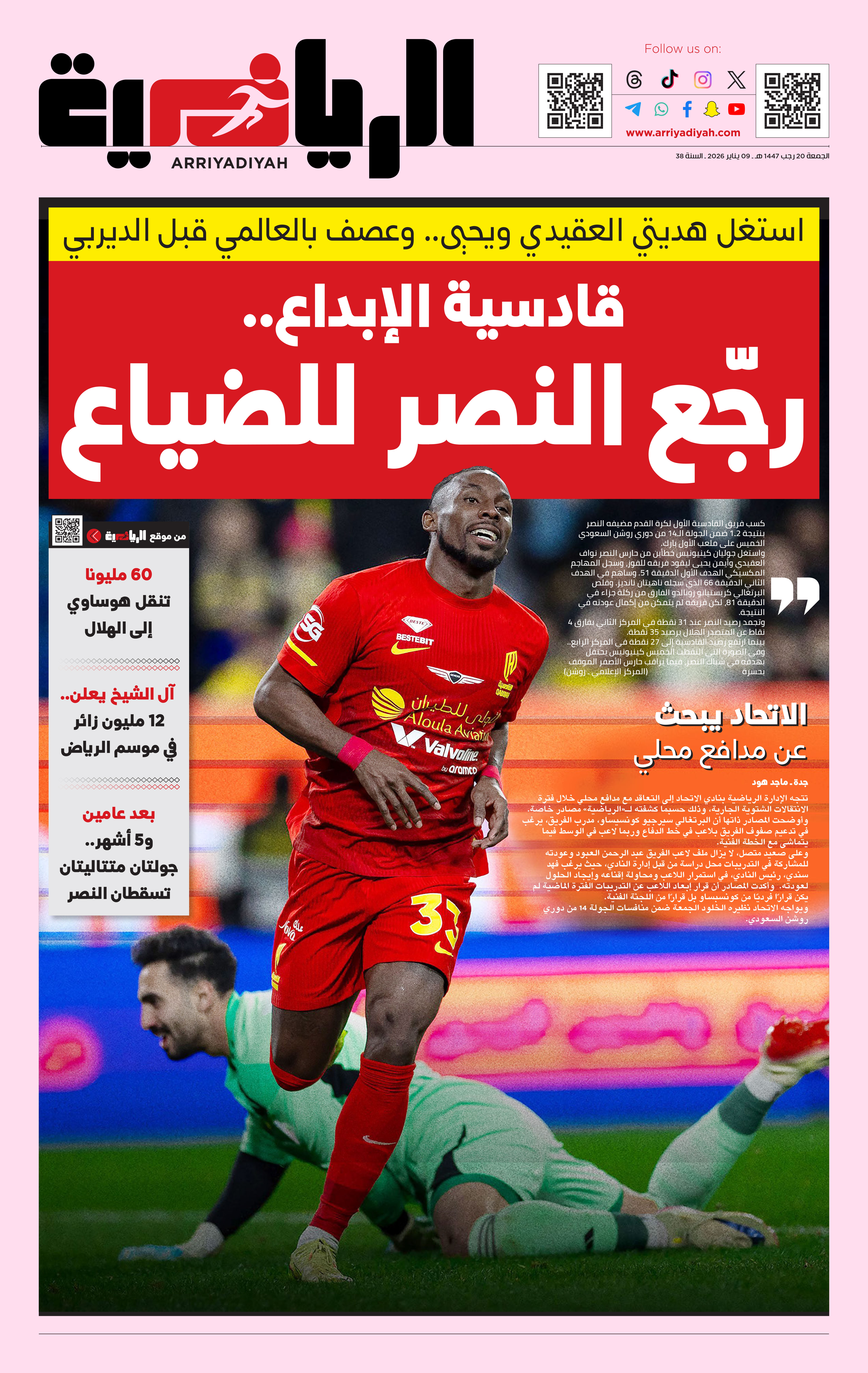 ويحتل النصر المرتبة الثانية في الدوري برصيد 31 نقطة مع إسدال الستار على منافسات الجولة الـ13.
